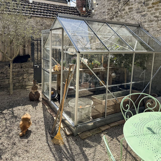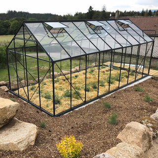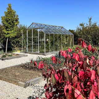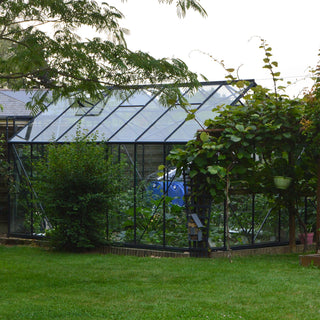 De constructie is slim afgestemd op dit type kas. Het glas wordt vastgezet met klemveren en bestaat uit kleinere glaspanelen die dakpansgewijs zijn geplaatst. Dat werkt prettig tijdens het monteren en maakt de kas minder gevoelig voor spanningen in het glas. Het resultaat is een stabiele kas die doet wat je ervan verwacht en een fijne basis vormt voor jarenlang kweekplezier.