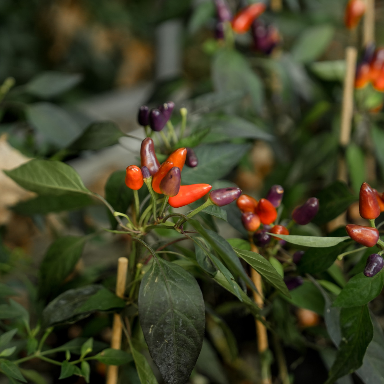 Betreten Sie die Welt von Farbe und Würze mit Paprika Lila Luzi, einer dekorativen, sehr kleinen Chilischote, die Ihren Garten in ein malerisches Fest verwandelt. Mit violetten Blättern und reichem Fruchtansatz bietet diese Paprika einen optischen Höhepunkt, während die Früchte von Violett über Gelb und Orange bis schließlich Rot ausreifen. Besonders geeignet als attraktive Topf- oder Kübelpflanze und auch ideal für den Anbau im Freien. Mit einem Schärfegrad von 7.