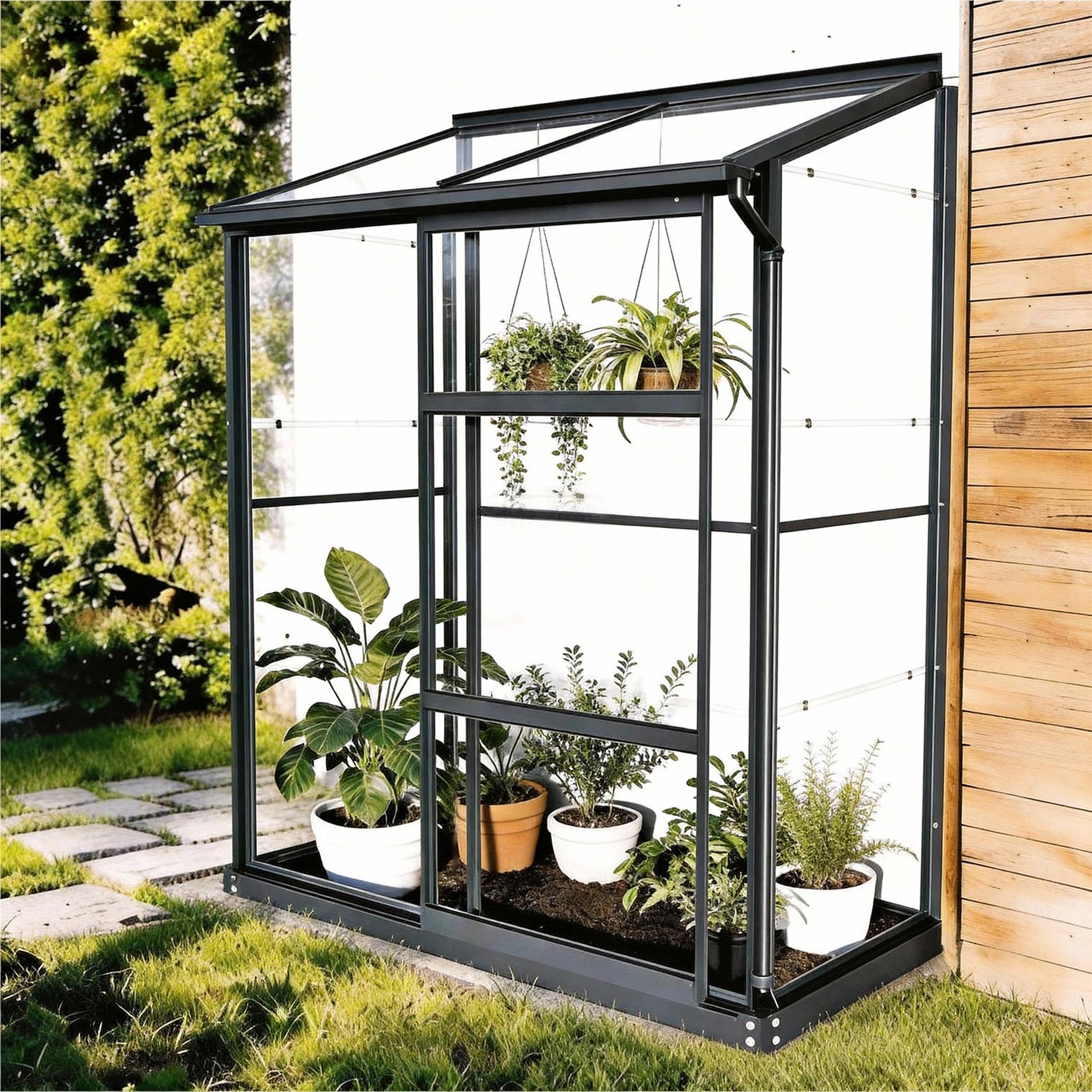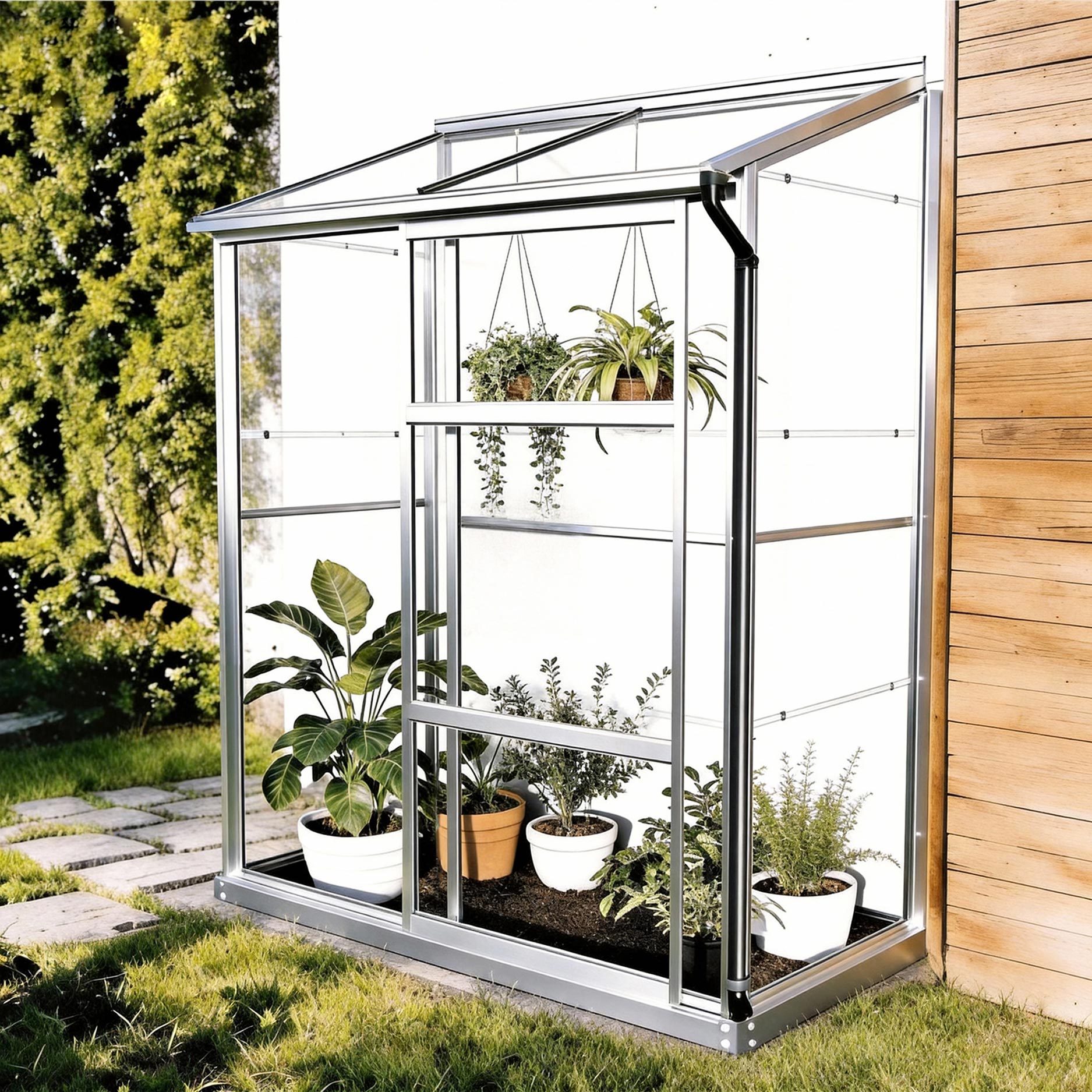 🟩 Kompaktes Anlehngewächshaus mit maximalem Lichteinfall