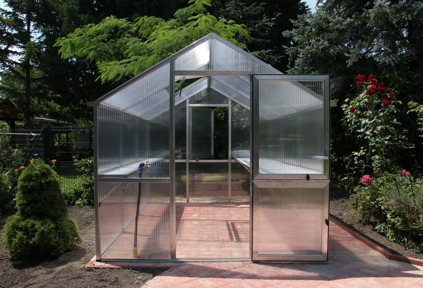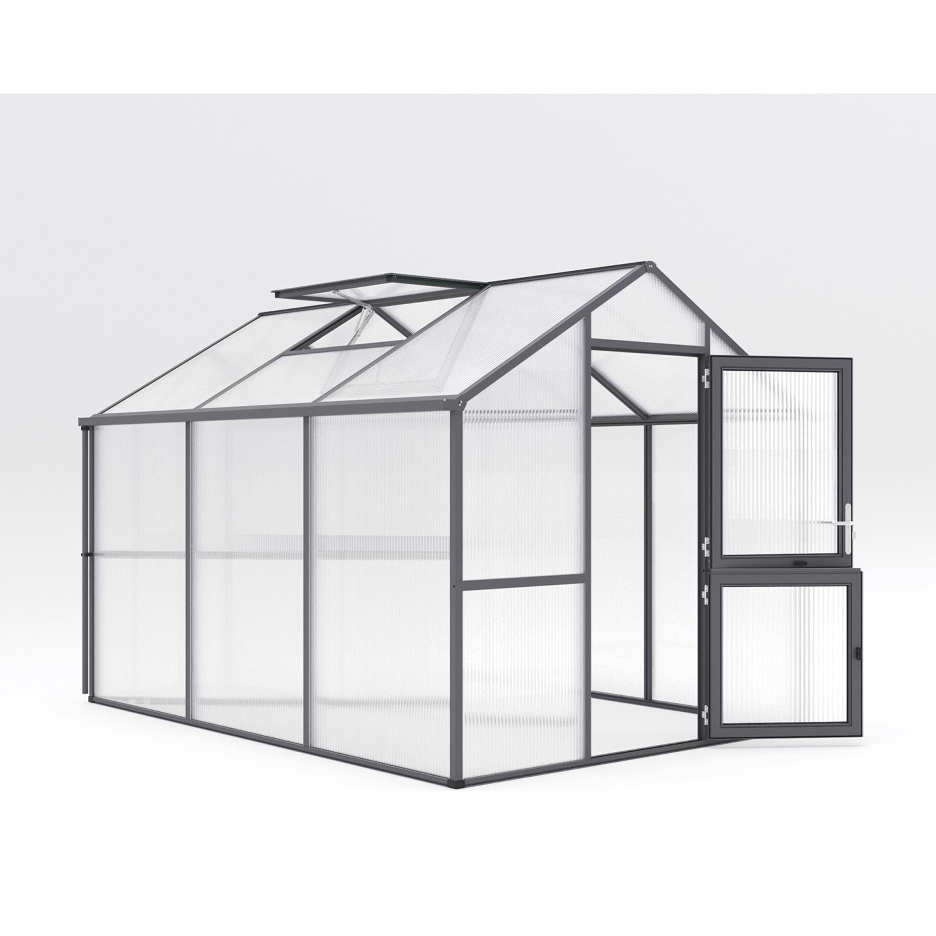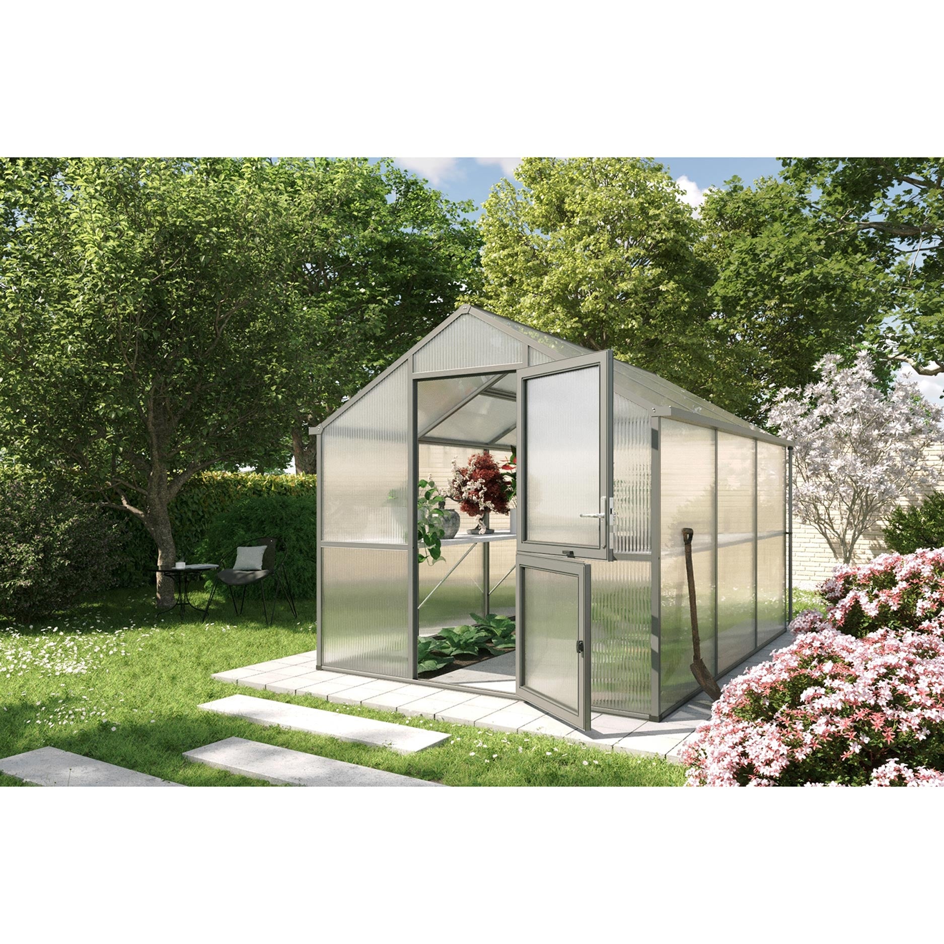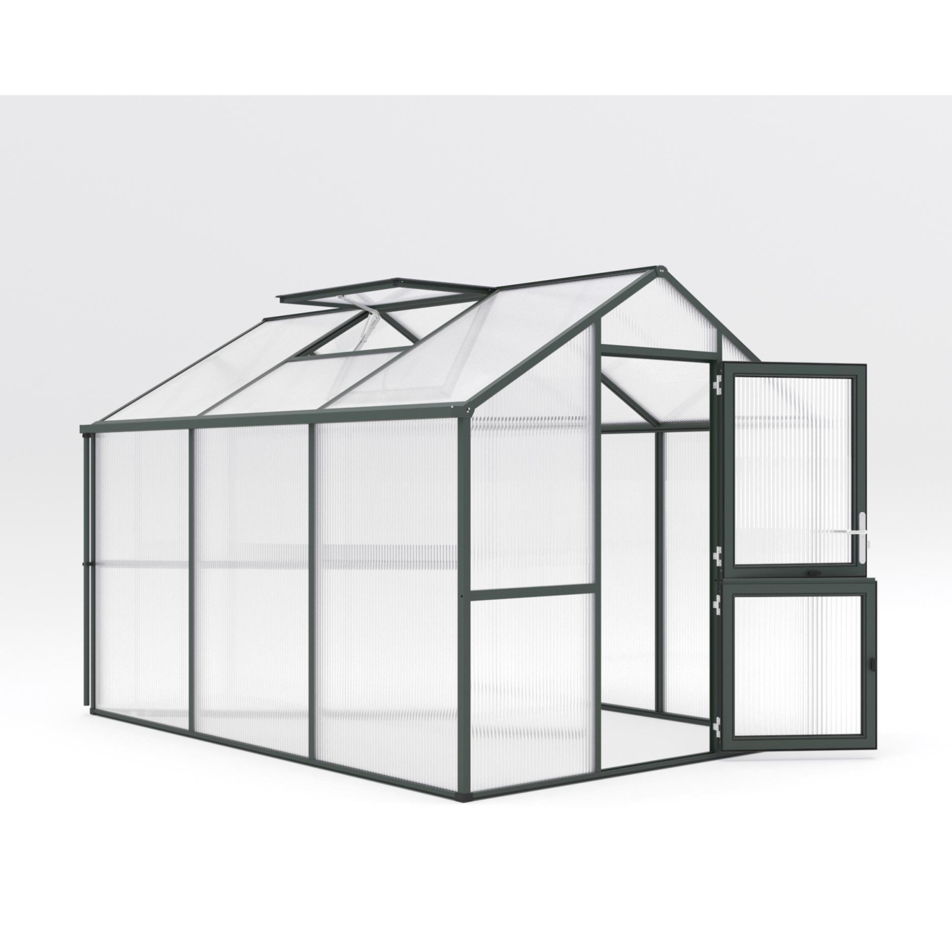 De 16mm kanaalplaten bieden uitzonderlijke isolatie en diffusie van licht, waardoor temperatuurverschillen en verbranding worden voorkomen. Het aluminium frame is licht, sterk en onderhoudsarm, geschikt voor jarenlang intensief gebruik. De kas is uitgerust met een brede draaideur, een automatisch dakraam, een handmatig achterraam en dubbele regengoten. Het optionele funderingsframe geeft extra stabiliteit, waardoor de Iris III ook bij harde wind betrouwbaar blijft.