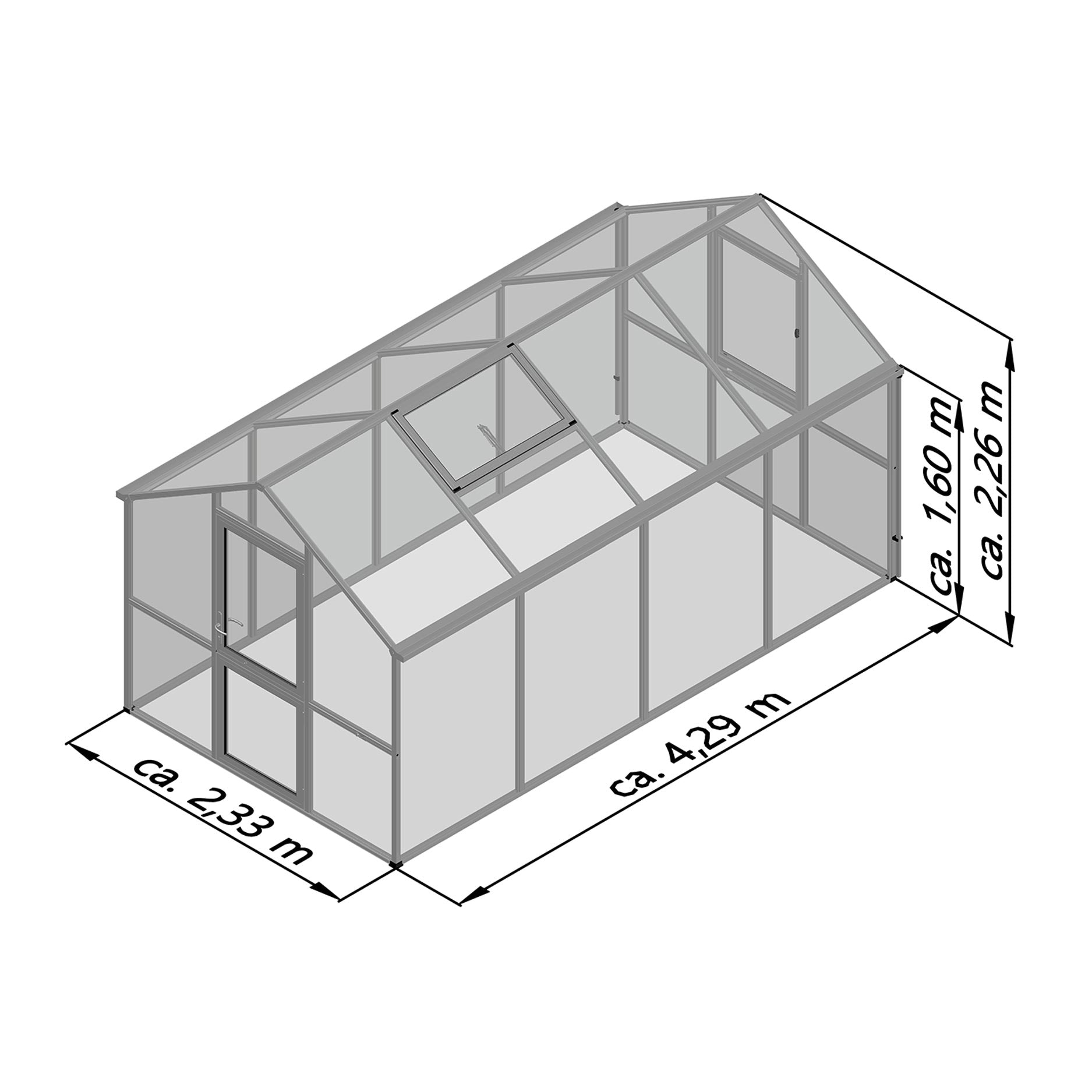 De constructie is opgebouwd uit een robuust aluminium frame met 16mm kanaalplaten die zorgen voor de hoogste isolatiewaarde binnen het KGT-assortiment. De platen zijn UV-beschermd, diffuus lichtdoorlatend en vrijwel onbreekbaar. De Iris IV is voorzien van een brede draaideur, een automatisch dakraam, een handmatig achterraam en dubbele regengoten voor afwatering of regenopvang. Met het optionele funderingsframe staat deze kas rotsvast, zelfs bij harde wind en langdurige belasting.