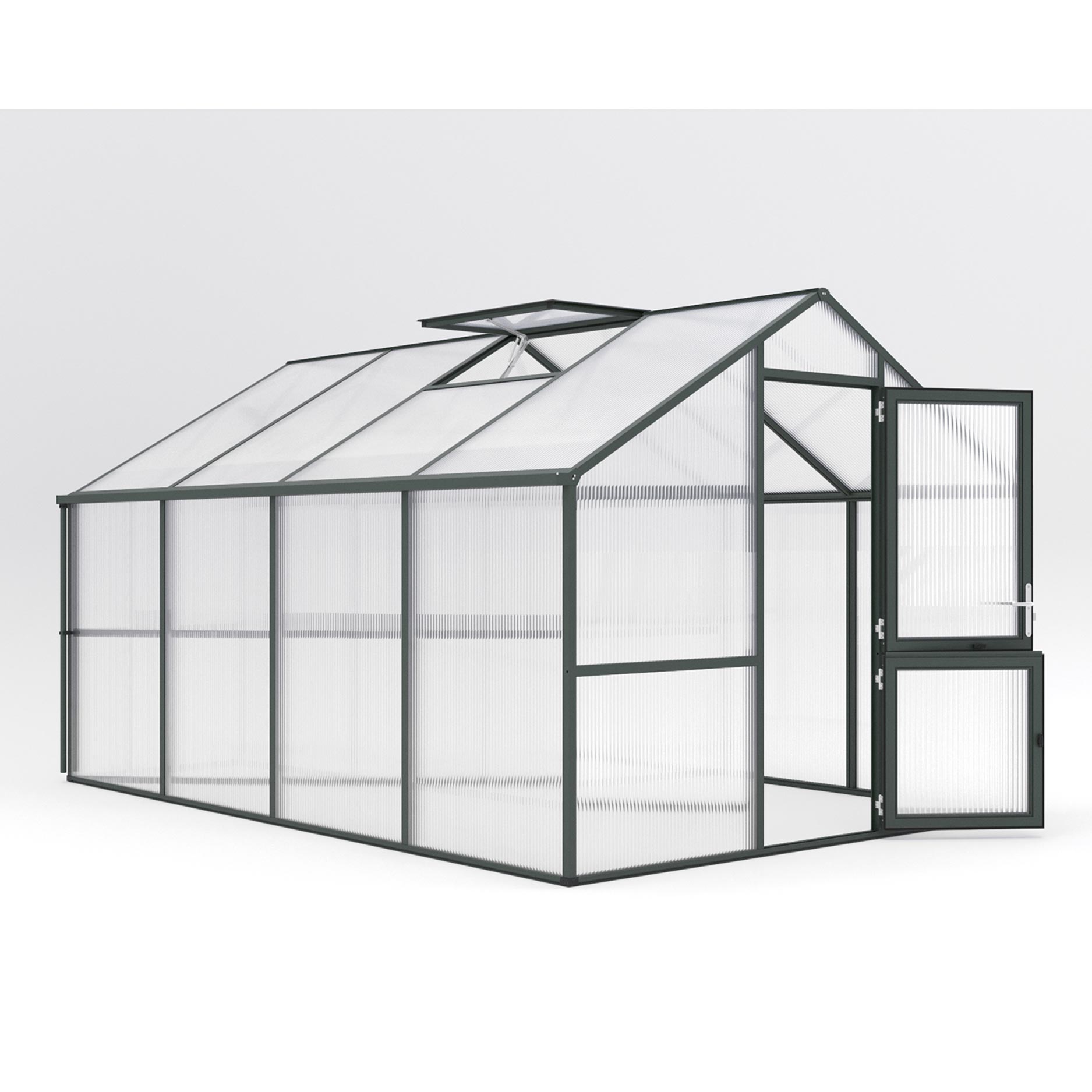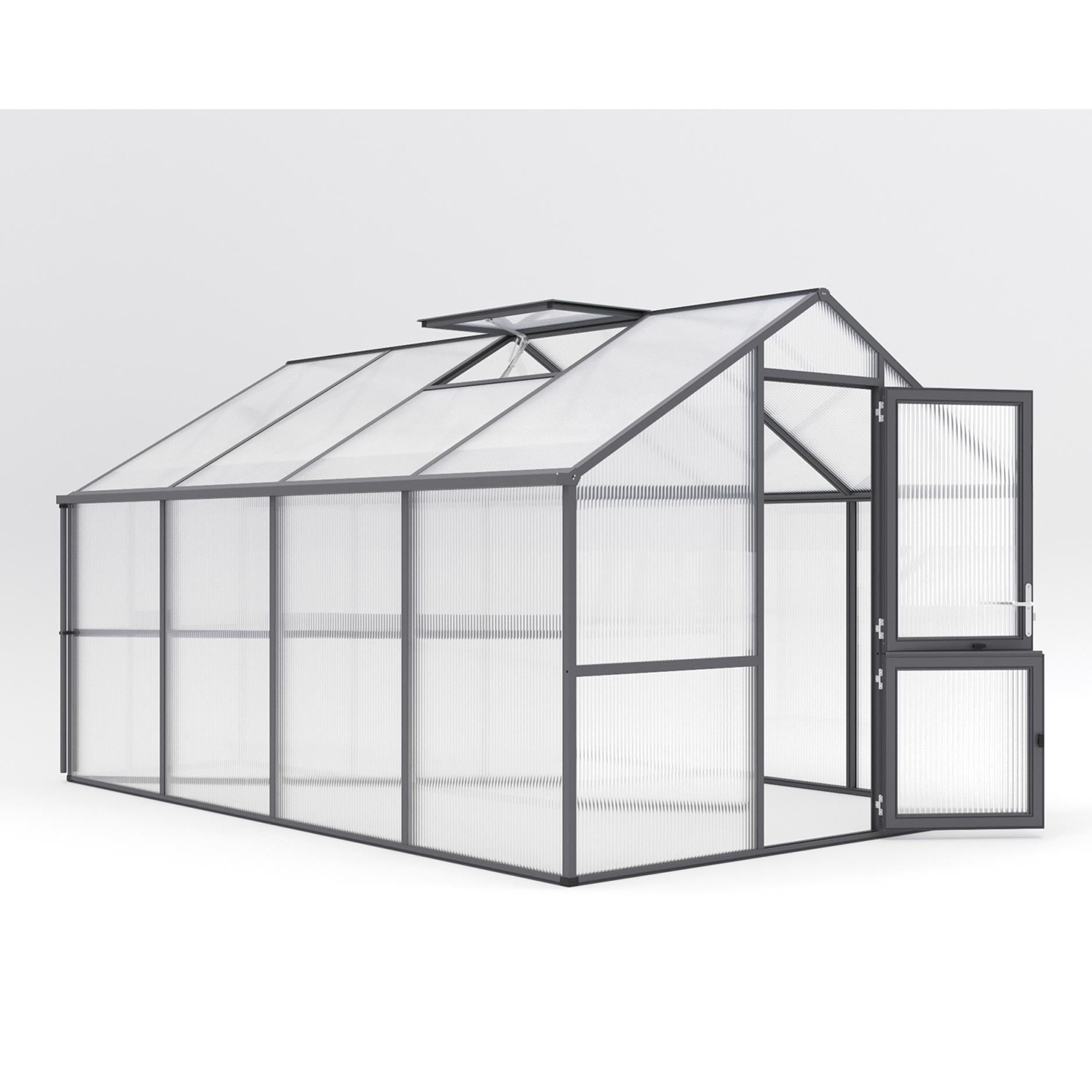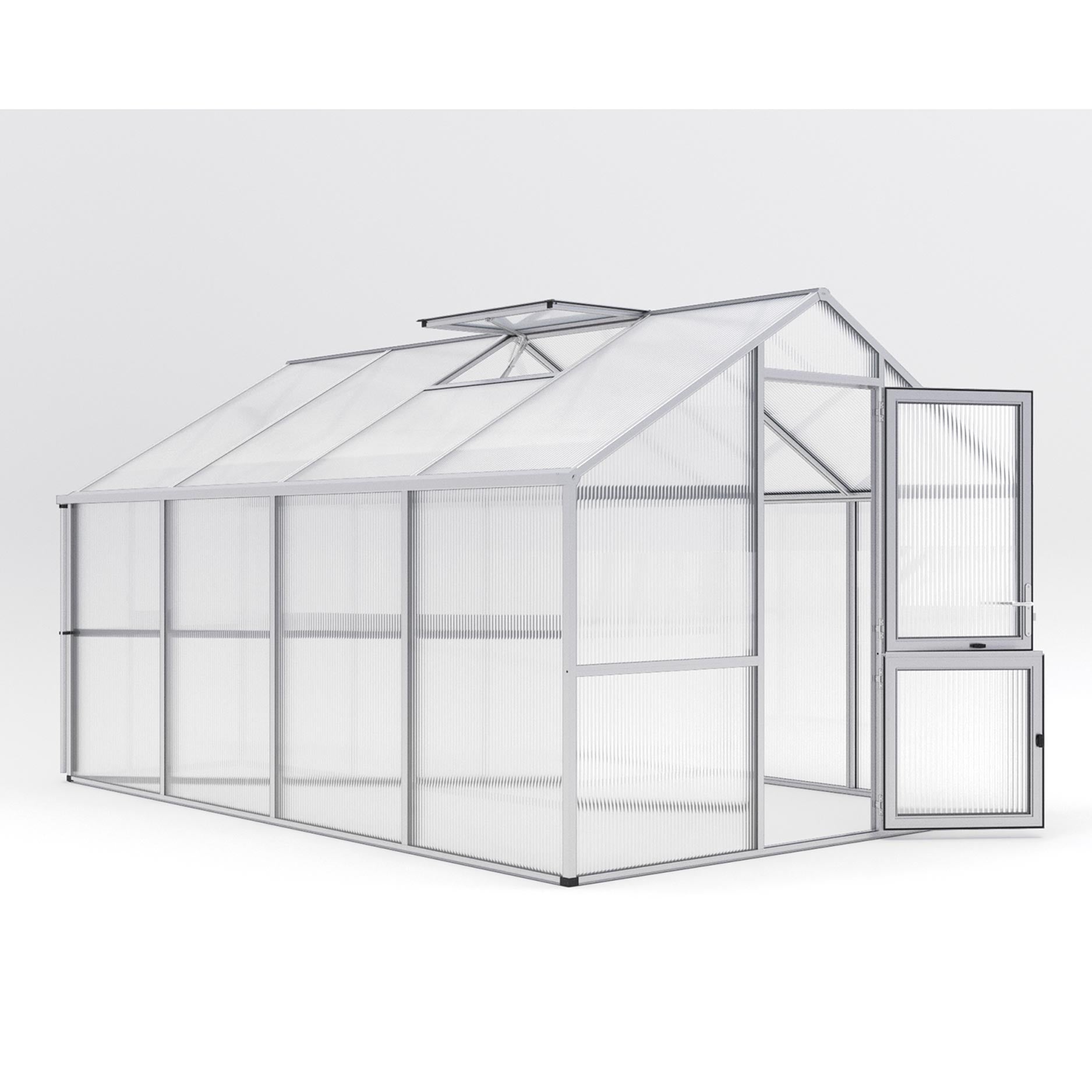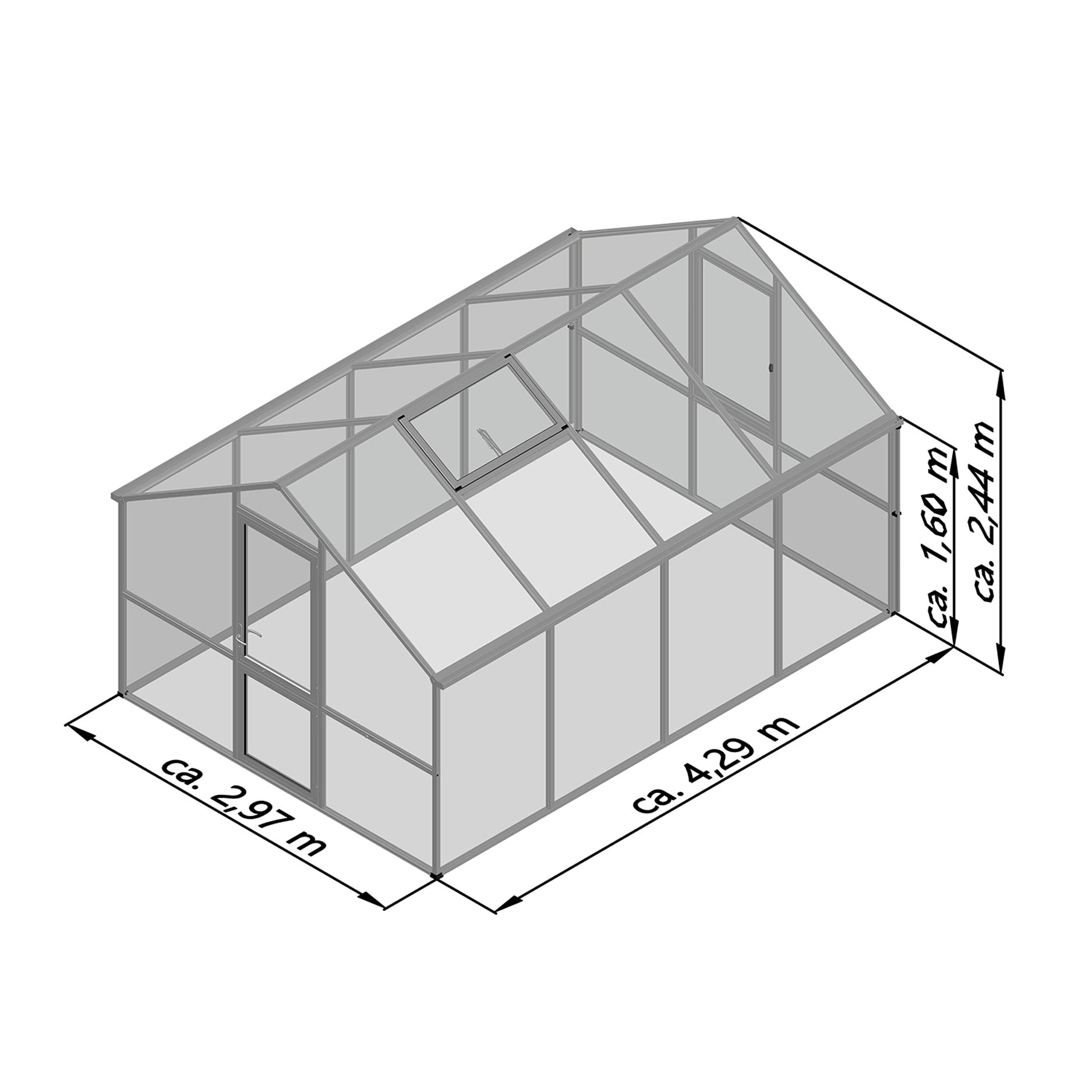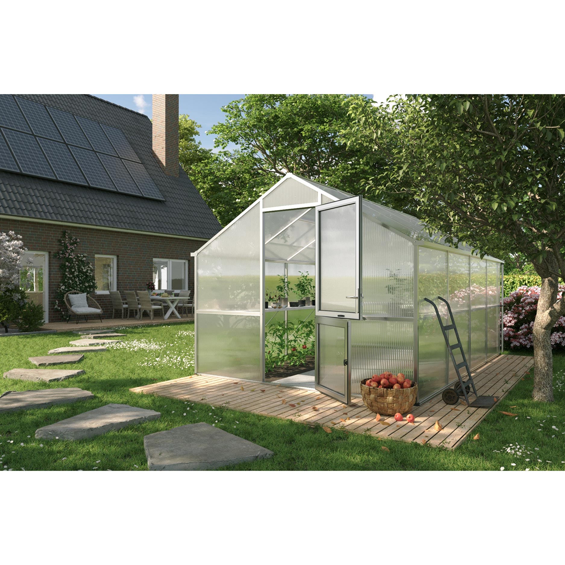 De kas is voorzien van 16mm kanaalplaten die warmte uitstekend vasthouden en UV-beschermd zijn. Ze zorgen voor maximale isolatie en diffuus licht, wat gelijkmatige groei bevordert. De aluminiumconstructie is robuust, onderhoudsarm en bestand tegen weer en wind. De Nelke IV beschikt over een brede draaideur, twee dakramen (waarvan één automatisch) en een handmatig achterraam voor optimale ventilatie. Dubbele regengoten zorgen voor efficiënte afwatering of regenopvang. Met het optionele funderingsframe staat de kas rotsvast, ook bij langdurige belasting.