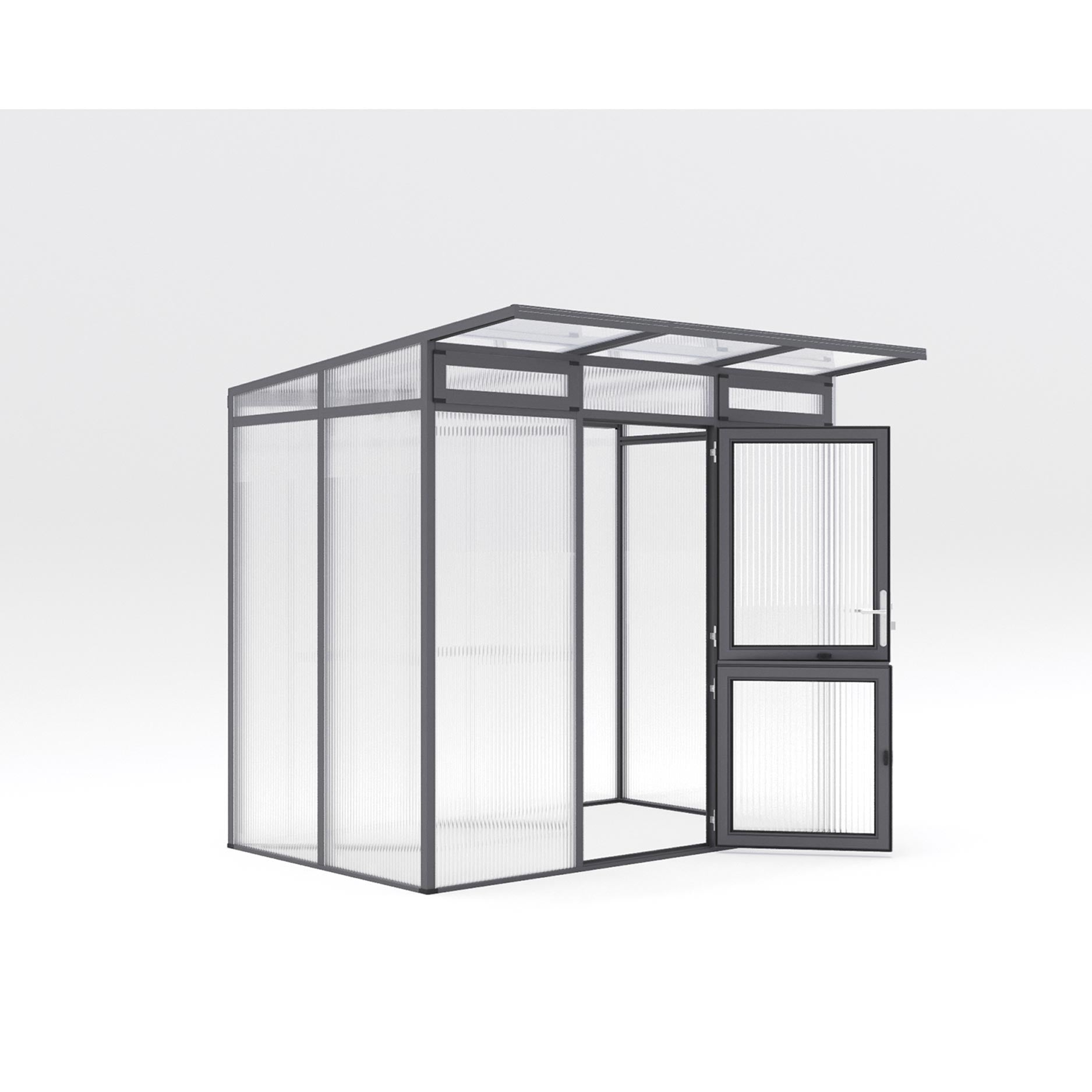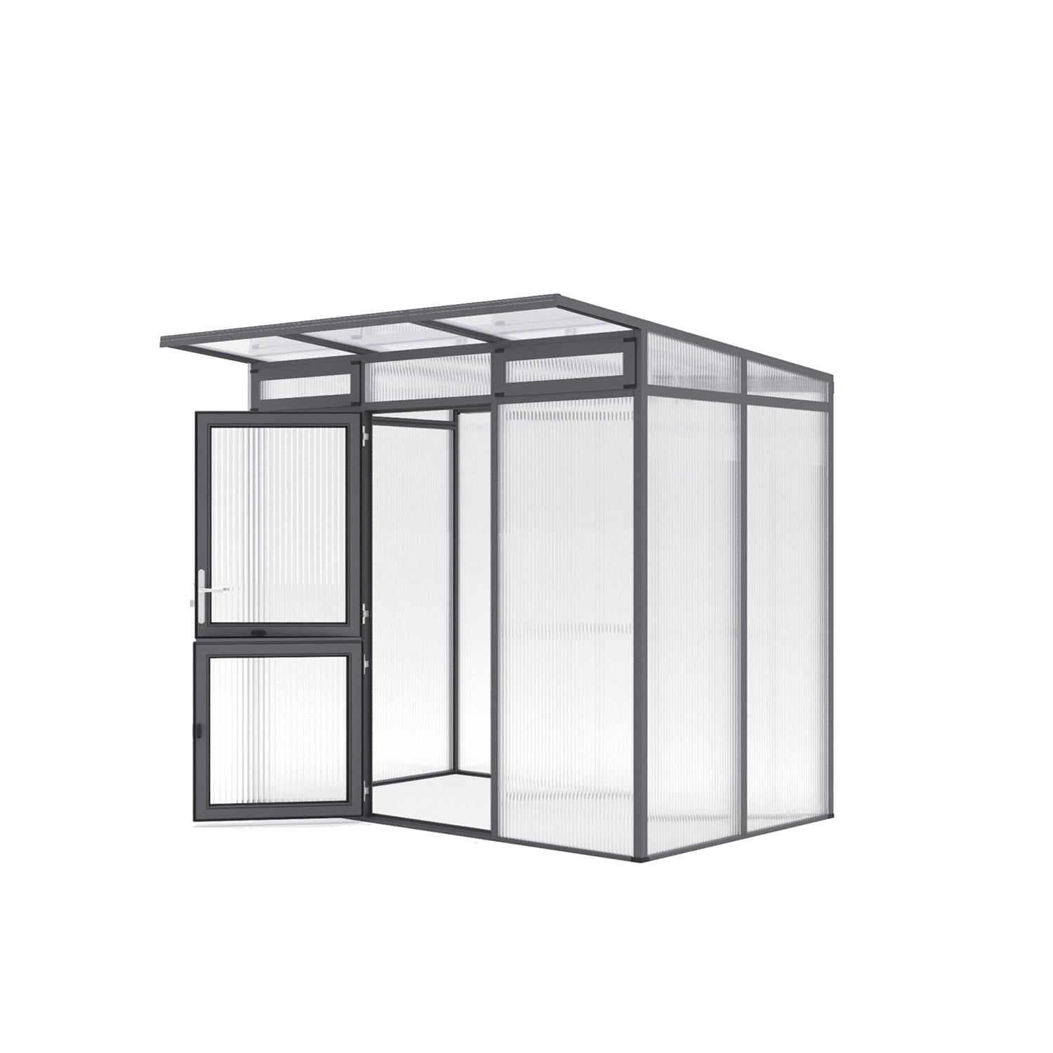 De aluminiumconstructie is sterk, onderhoudsarm en bestand tegen wind, regen en vorst. De 16mm kanaalplaten zorgen voor uitstekende isolatie, waardoor warmteverlies minimaal is en temperatuurschommelingen worden beperkt. De platen zijn UV-beschermd en diffuus lichtdoorlatend, wat zorgt voor gelijkmatige groei en minder kans op verbranding. De kas is voorzien van een brede draaideur, een automatisch dakraam en geïntegreerde regengoten. Met het optionele funderingsframe staat de kas stabiel, waterpas en jarenlang onderhoudsvrij.