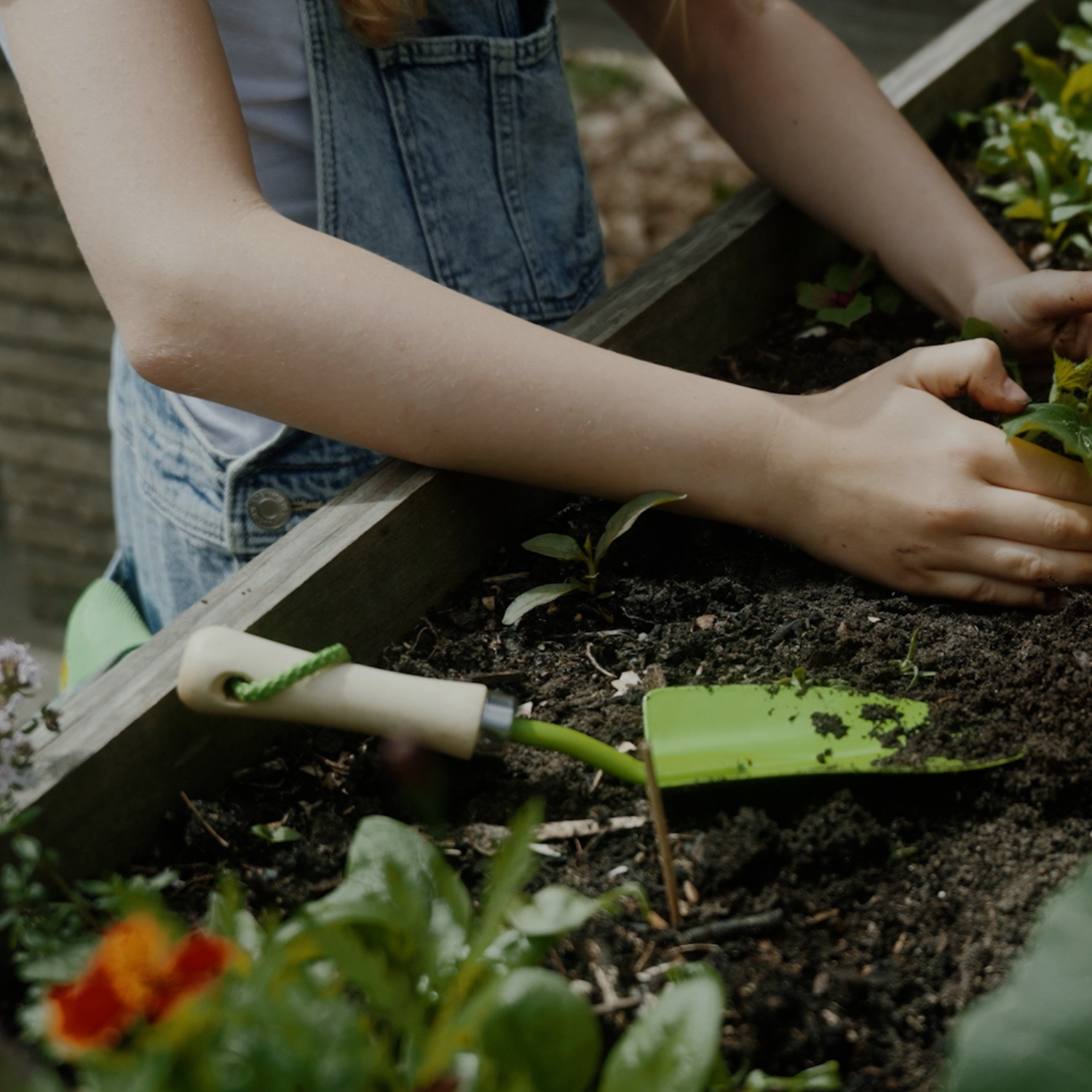 Draussen zu spielen und dabei eine Handschaufel zu verwenden, ist zugleich unterhaltsam und lehrreich. Es fördert die Feinmotorik, die Neugier und das Interesse an der Natur, während Kinder lernen, zusammenzuarbeiten und stolz auf das sein können, was sie selbst gemacht oder wobei sie geholfen haben.