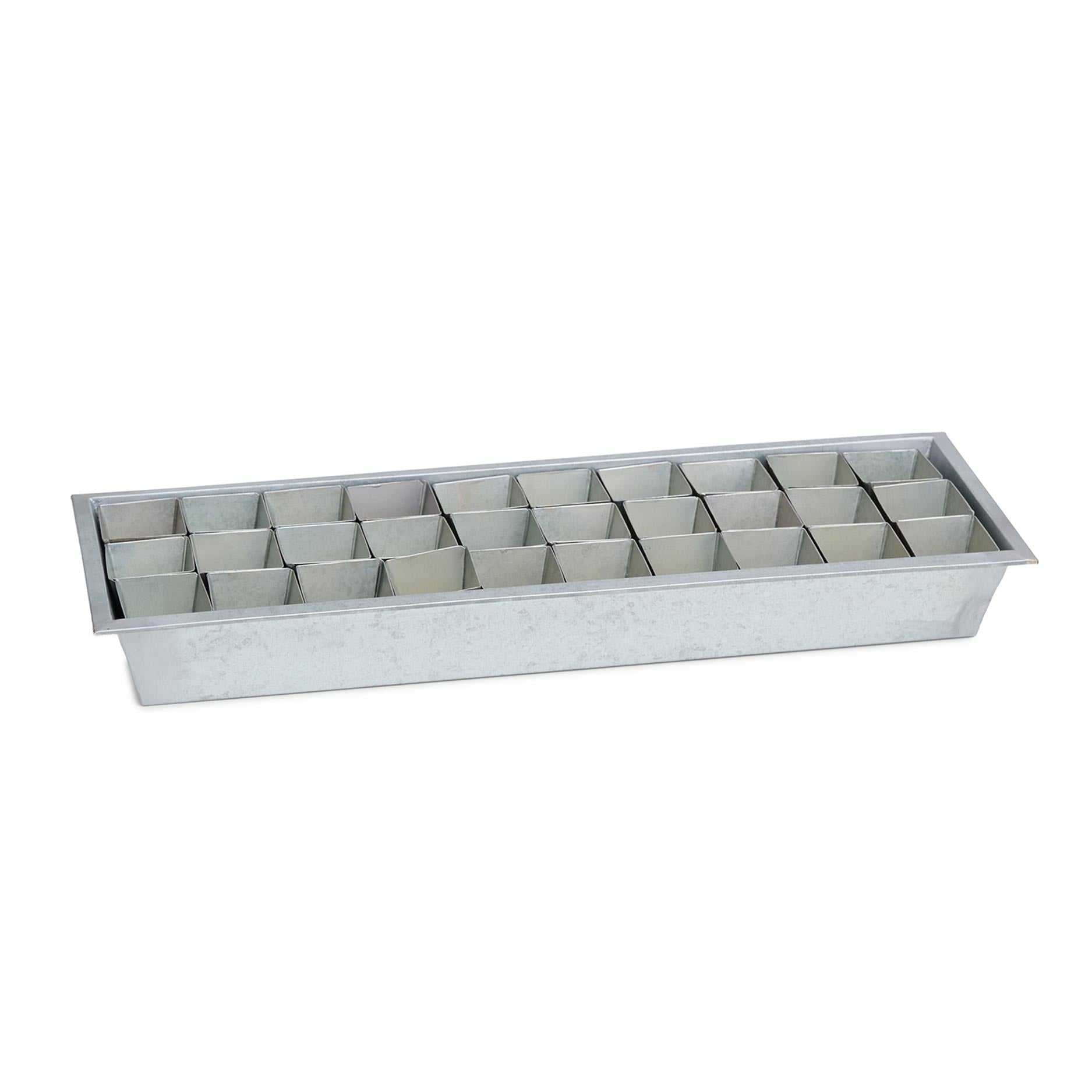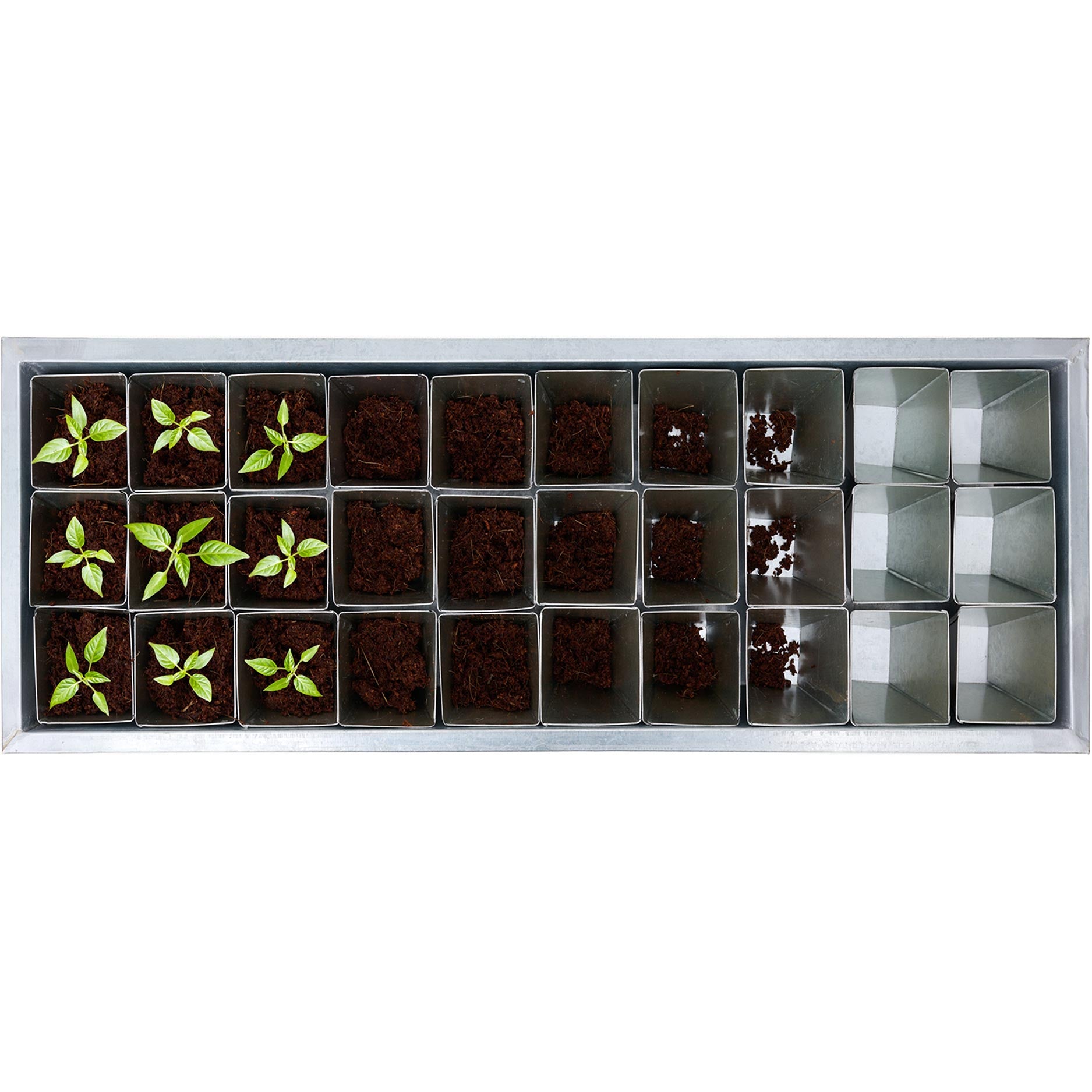 Die Metall-Aussaatschale mit blanken Töpfen ist ein Set aus einer blankfarbenen Unterschale mit 30 farbigen Töpfchen – eine stabile, rostbeständige Saatschale mit dreissig Metalltöpfchen, ideal zum Vorziehen von Gemüse-, Kräuter- oder Blumensamen. Die Töpfchen sind wiederverwendbar und langlebig.