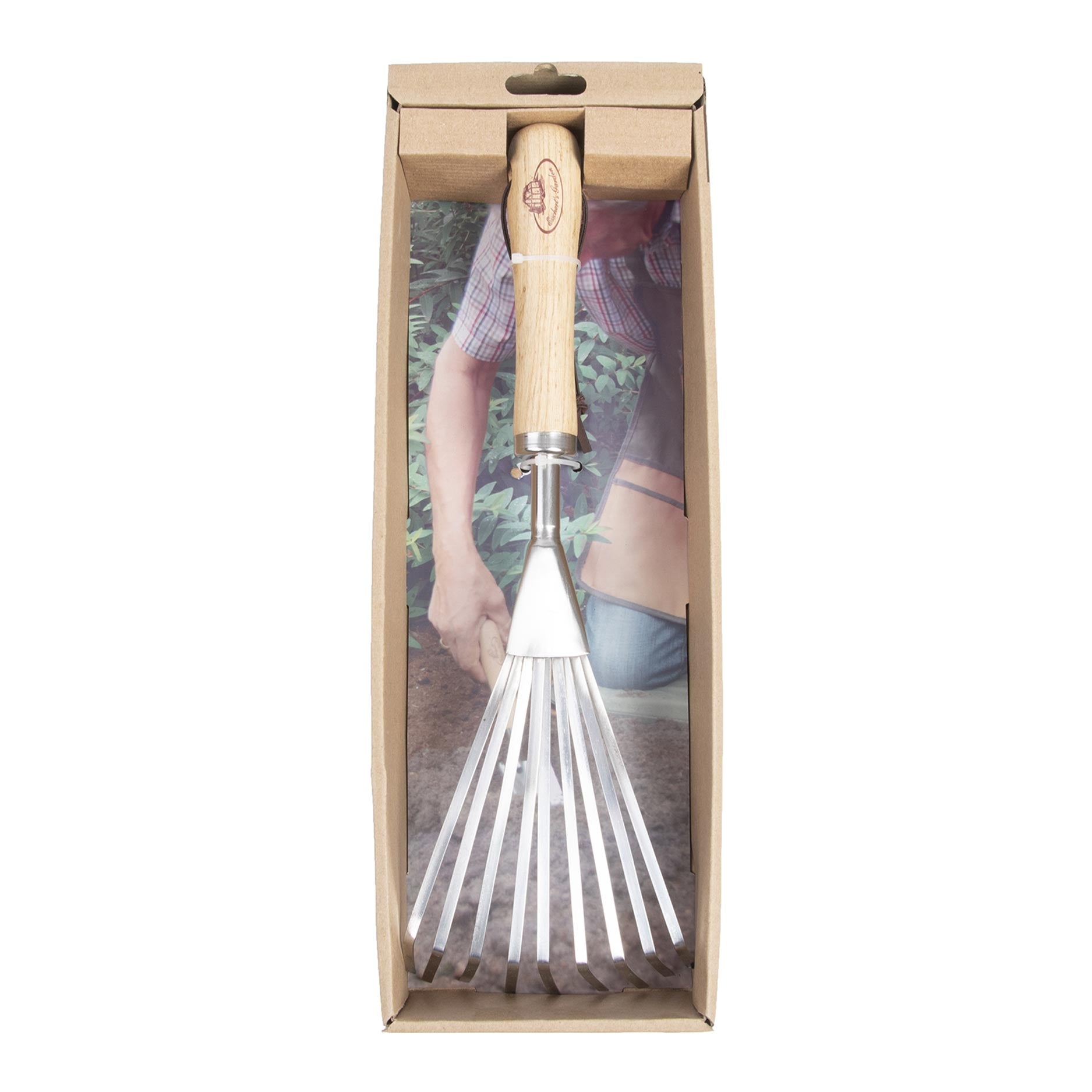 Der Handlaubrechen aus rostfreiem Stahl ist ein traditionelles Gartengerät für alle mit grünem Daumen und ideal für die ordentliche Pflege rund um Pflanzen und in kleineren Gartenteilen. Mit diesem Rechen glätten Sie mühelos eine kleine Fläche und harken Laub, Schnittgut oder Mulch zusammen. Der Handlaubrechen besteht aus rostfreiem Stahl mit einem Griff aus Eschenholz und ist mit Rindsleder in Form einer Leder-Aufhängeschlaufe versehen. Ausserdem wird er in einer offenen Geschenkbox geliefert, was ihn zu einem schönen Geschenk macht.