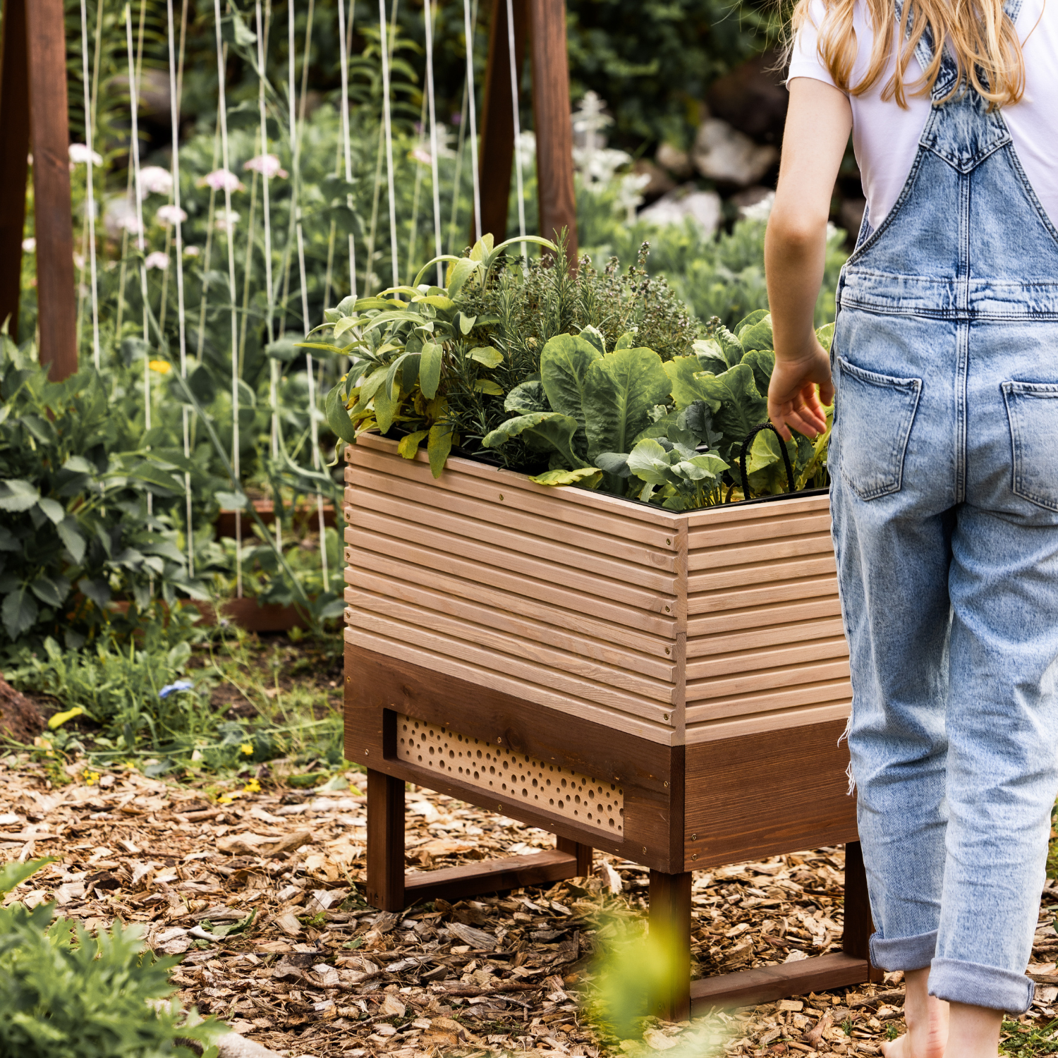 Bestäuben und schützen Sie die Pflanzen in diesem Hochbeet mit den Besuchern des eingebauten Insektenhotels. Ein schöner, schwerer Pflanztisch, ein äußerst nützliches Insektenhotel – und das alles in einer ansprechenden Farbe. Mit den Pflanztischen von Natura Eterna schaffen Sie Ihren eigenen modernen Küchengarten.