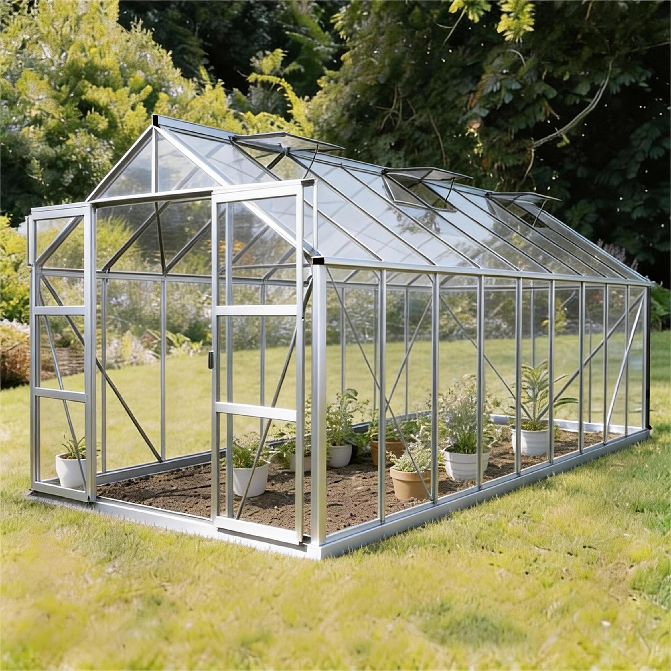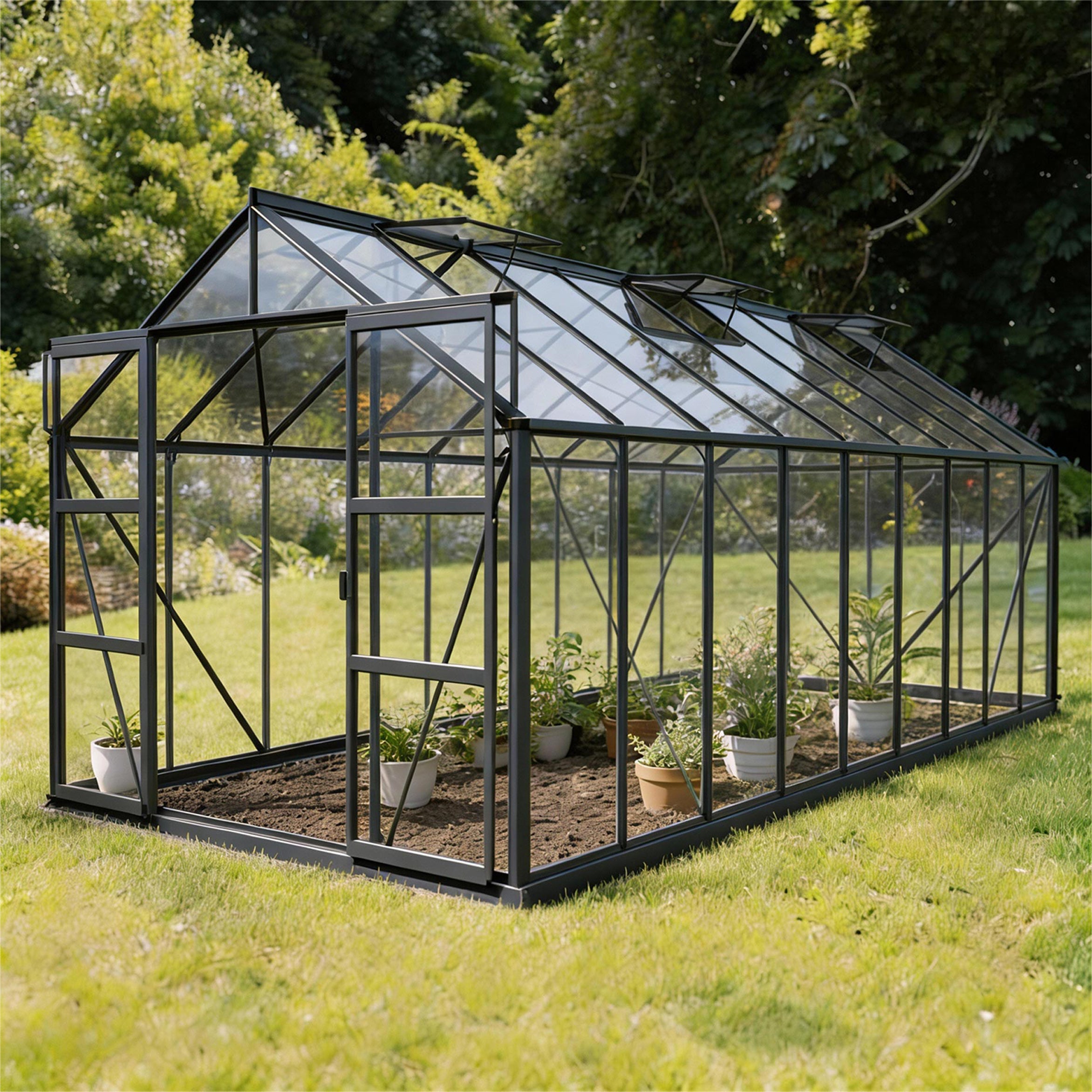 🟩 Besonders geräumiges Gewächshaus mit sechs Dachfenstern und doppelter Schiebetür