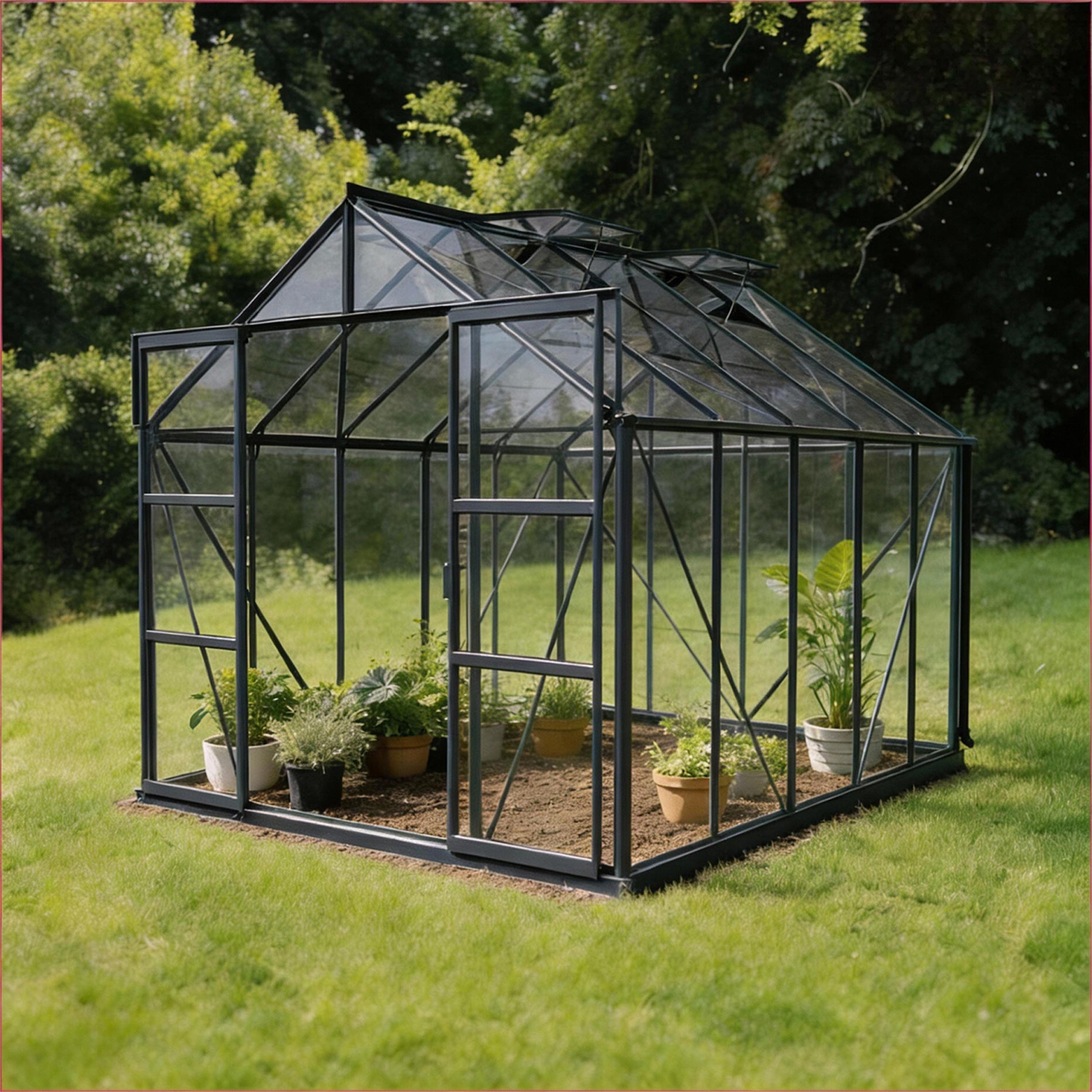 🟩 Geräumiges Gewächshaus mit doppelter Schiebetür und vier Dachfenstern