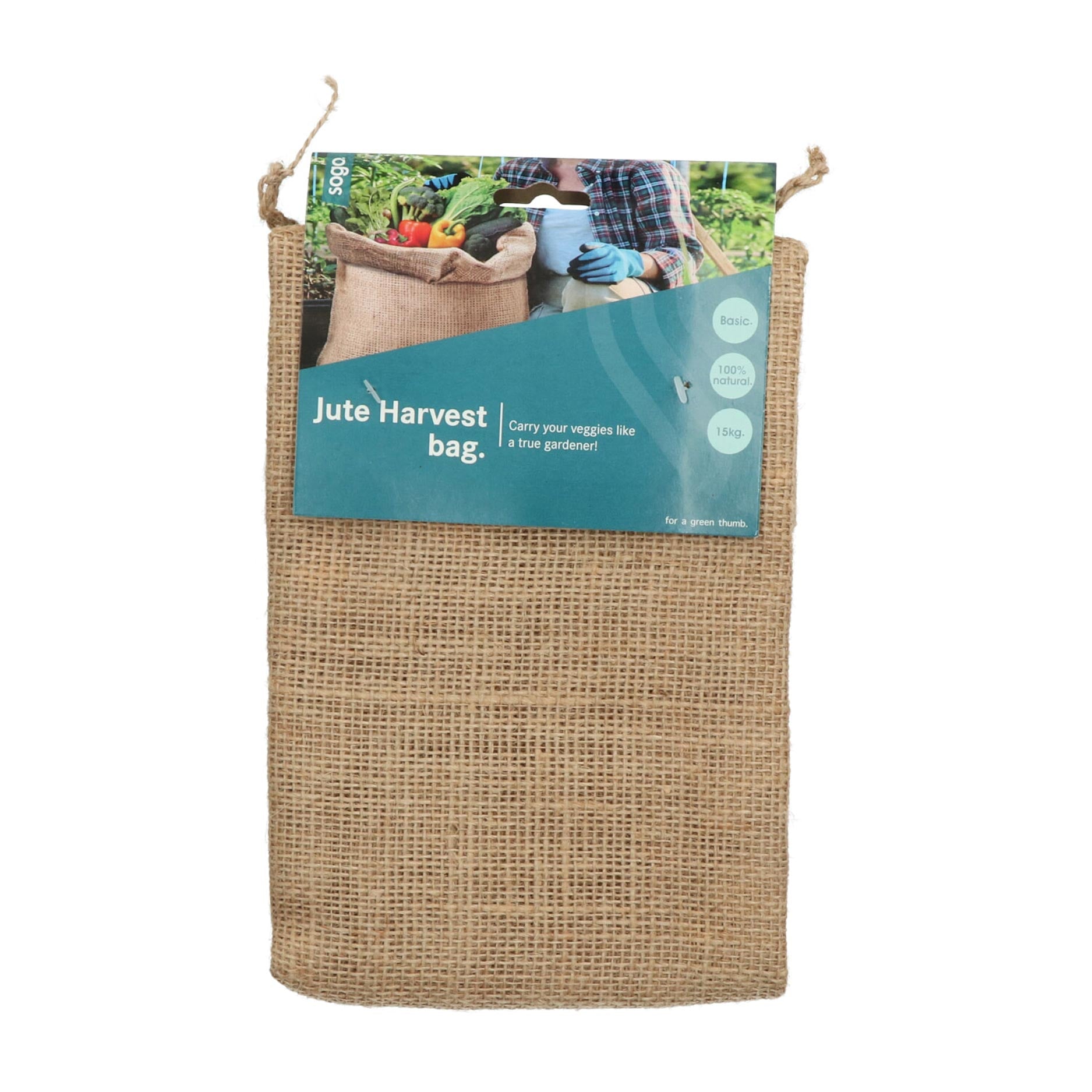 De oogstzak is gemaakt van biologisch afbreekbaar jute, een natuurlijk materiaal dat na verloop van tijd volledig afbreekt. Daarmee vormt hij een goed alternatief voor kunststof zakken bij oogst- en tuinafval. Door de herbruikbaarheid en het natuurlijke materiaal sluit deze zak aan bij een bewuste en praktische manier van tuinieren.