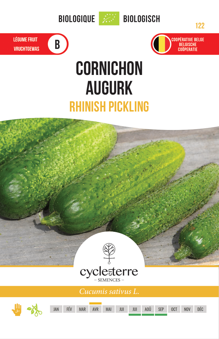 Augurk Rhinish Pickling is een klassieke augurk die speciaal geselecteerd is voor het inmaken. De planten vormen compacte ranken met veel zijscheuten en produceren talrijke kleine, frisgroene vruchten met een fijne structuur en een lichte ribbeling. Deze augurk wordt het mooist wanneer hij jong geoogst wordt; dan blijft het vruchtvlees stevig, sappig en vol van smaak.