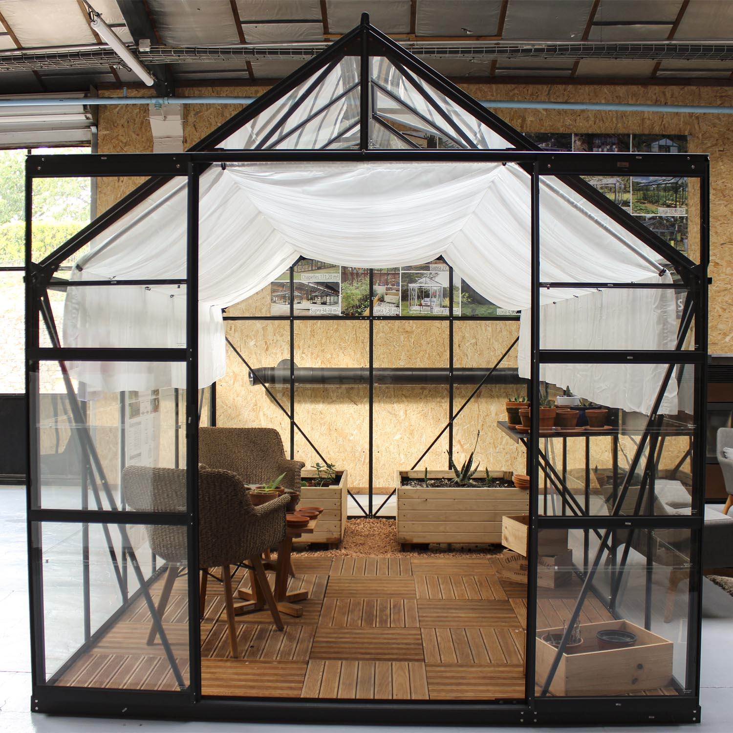 Het schaduwdoek is uitgevoerd in antraciet en is speciaal bedoeld voor het Laurus-model.