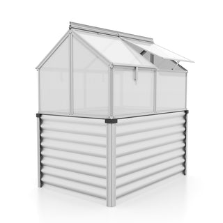 Heel veel mooier dan de Gaia Jumbo verhoogde Kweekbak wordt het niet! De uitvoering in glas is zowel mooi als goed voor de teelt. Deze uitvoering is de Gaia Jumbo Kweekbak op een speciaal op maat gemaakte hoogwaardige bak van zwaar aluminium panelen. Zowel de bak als kas zijn van topkwaliteit en bieden maximaal kweekplezier voor vele jaren. De bak is 65cm hoog, daarmee wordt de totale hoogte van deze kweekbak 137cm.