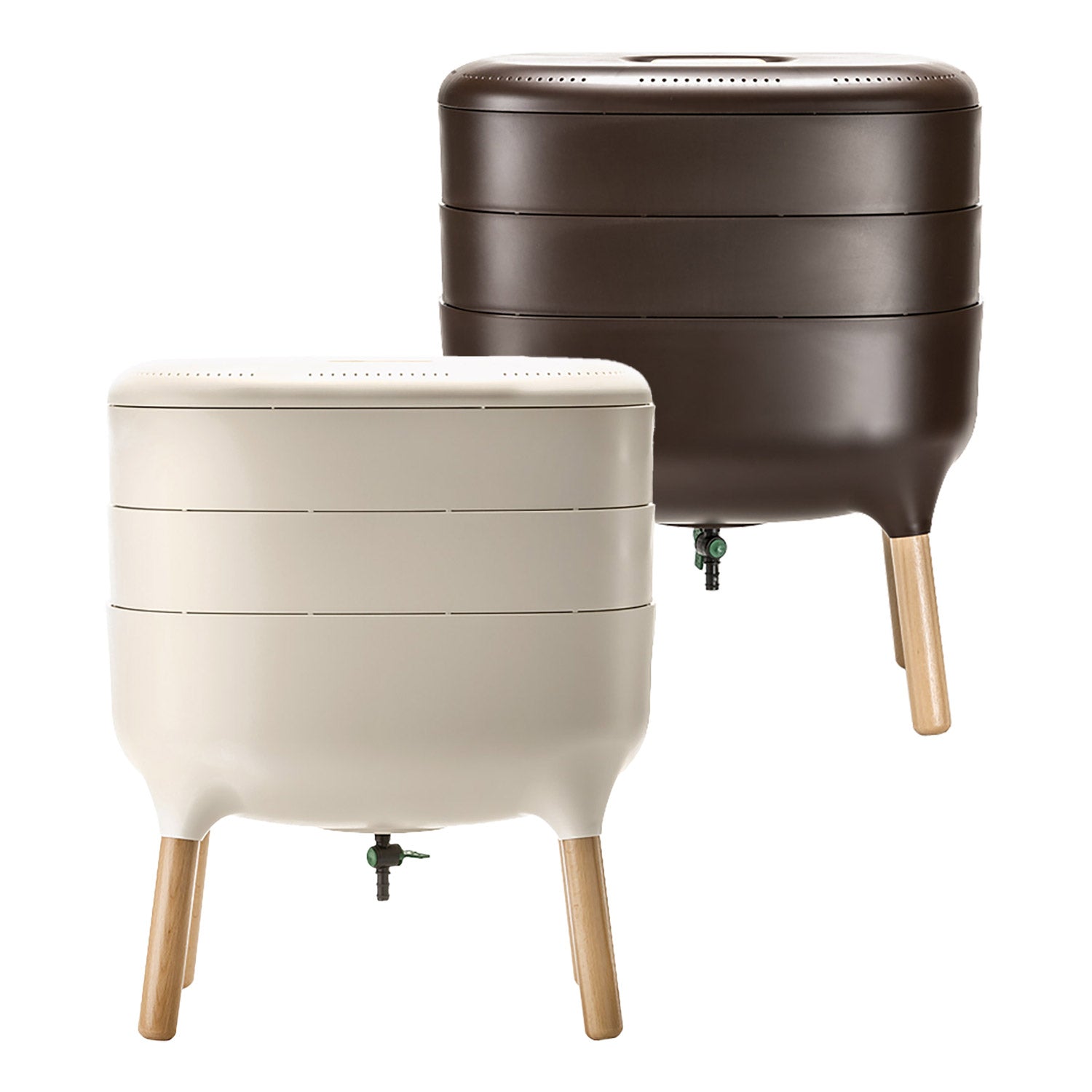 Dit model in bijzonder heeft een kraantje aan de onderzijde, hierdoor laat je de ''wormenthee'' er gemakkelijk uitlopen en kun jij jouw planten direct voorzien van meststof. De wormen verdubbelen zich elke drie maanden, zo zijn er altijd voldoende wormen in de composter.