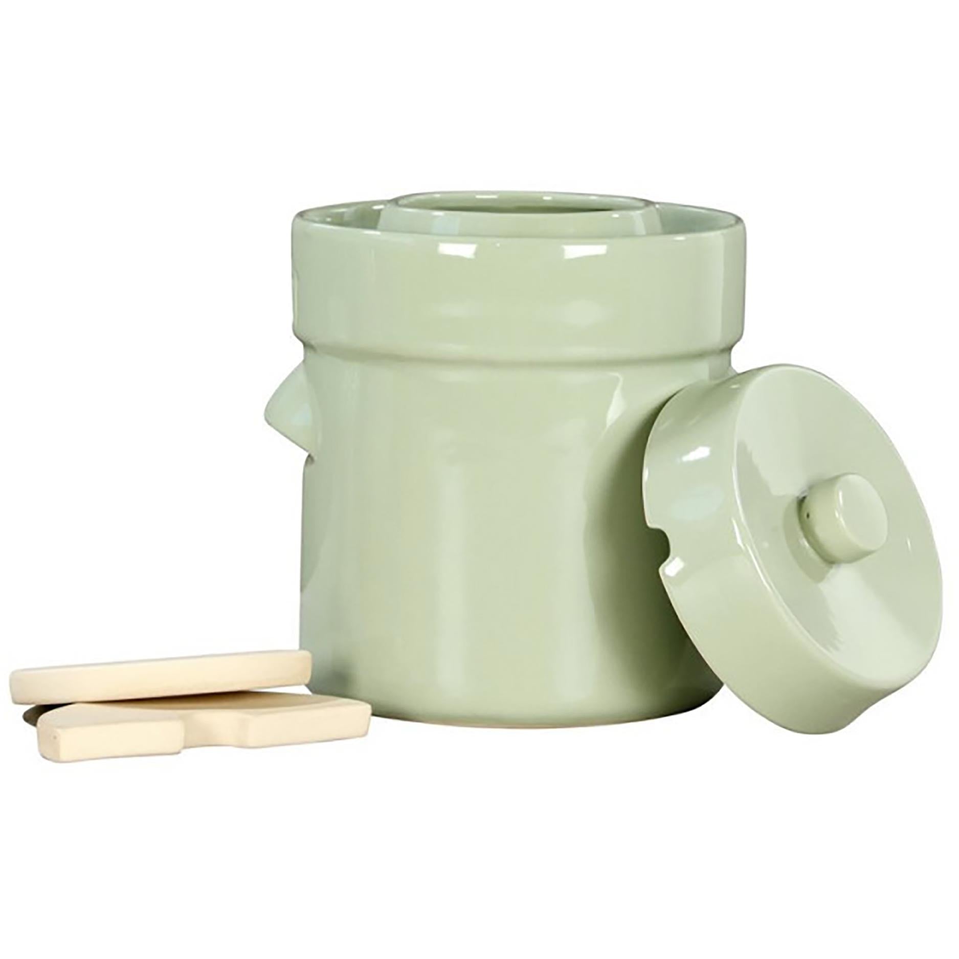 Der Sauerkrauttopf ist aus Keramik gefertigt und in Weiss ausgeführt, was während des Fermentierens für stabile Bedingungen sorgt. Keramik hält die Temperatur gut und eignet sich daher sehr gut für die Milchsäuregärung. Der Topf ist für den wiederholten Gebrauch gedacht und bildet eine gute Grundlage für die Herstellung von Sauerkraut, Kimchi und anderem fermentierten Gemüse.